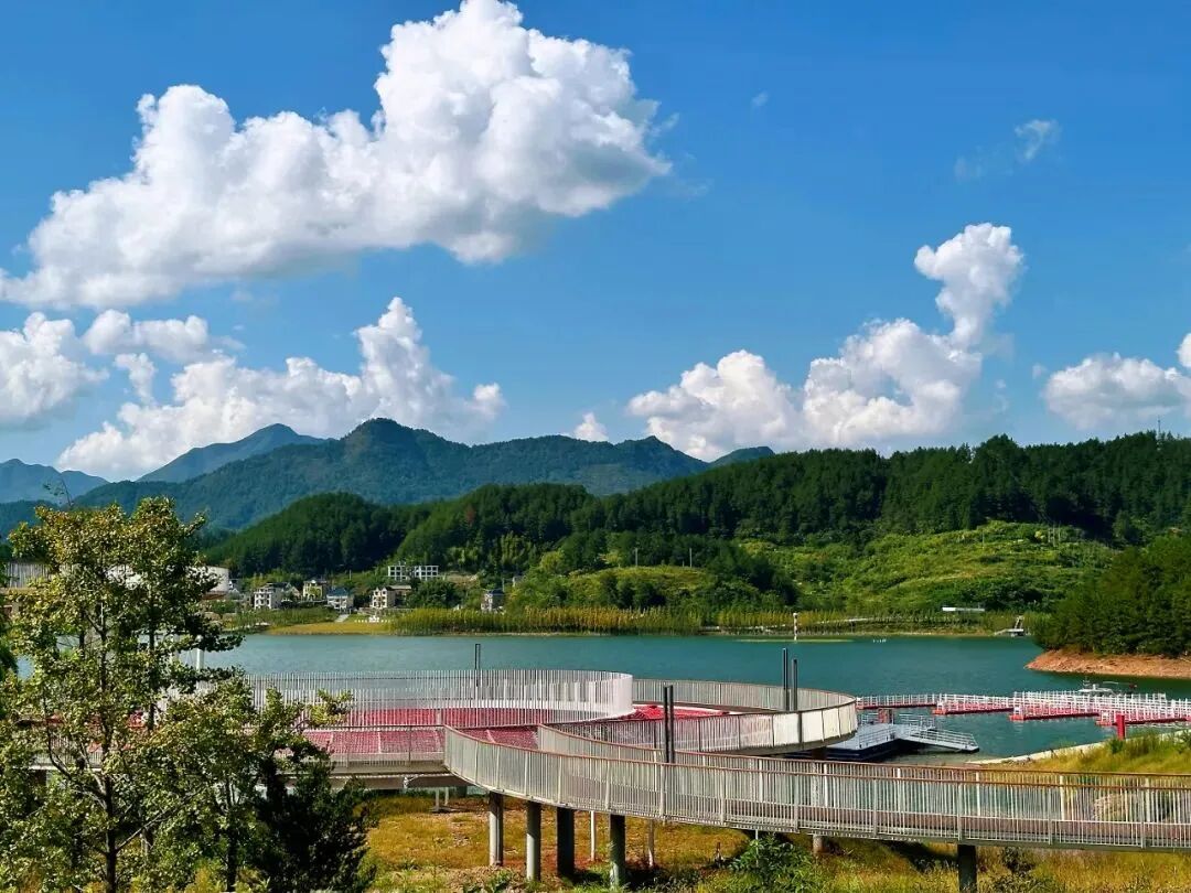 遂昌仙侠湖水丽公园公园内配备驿站、环湖栈道、观景平台、蹦床乐园、滑梯沙池、运动健身等休闲区域。